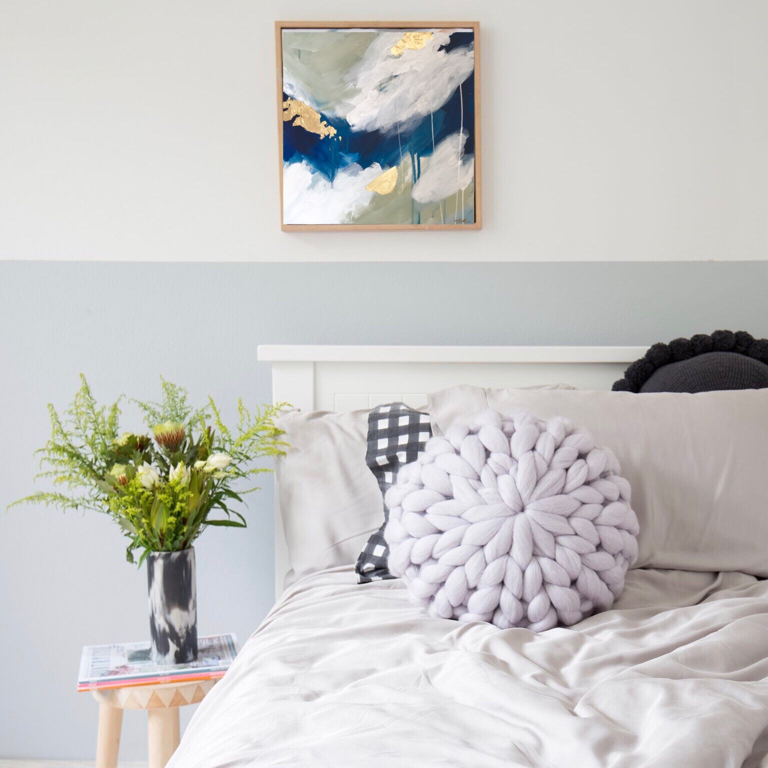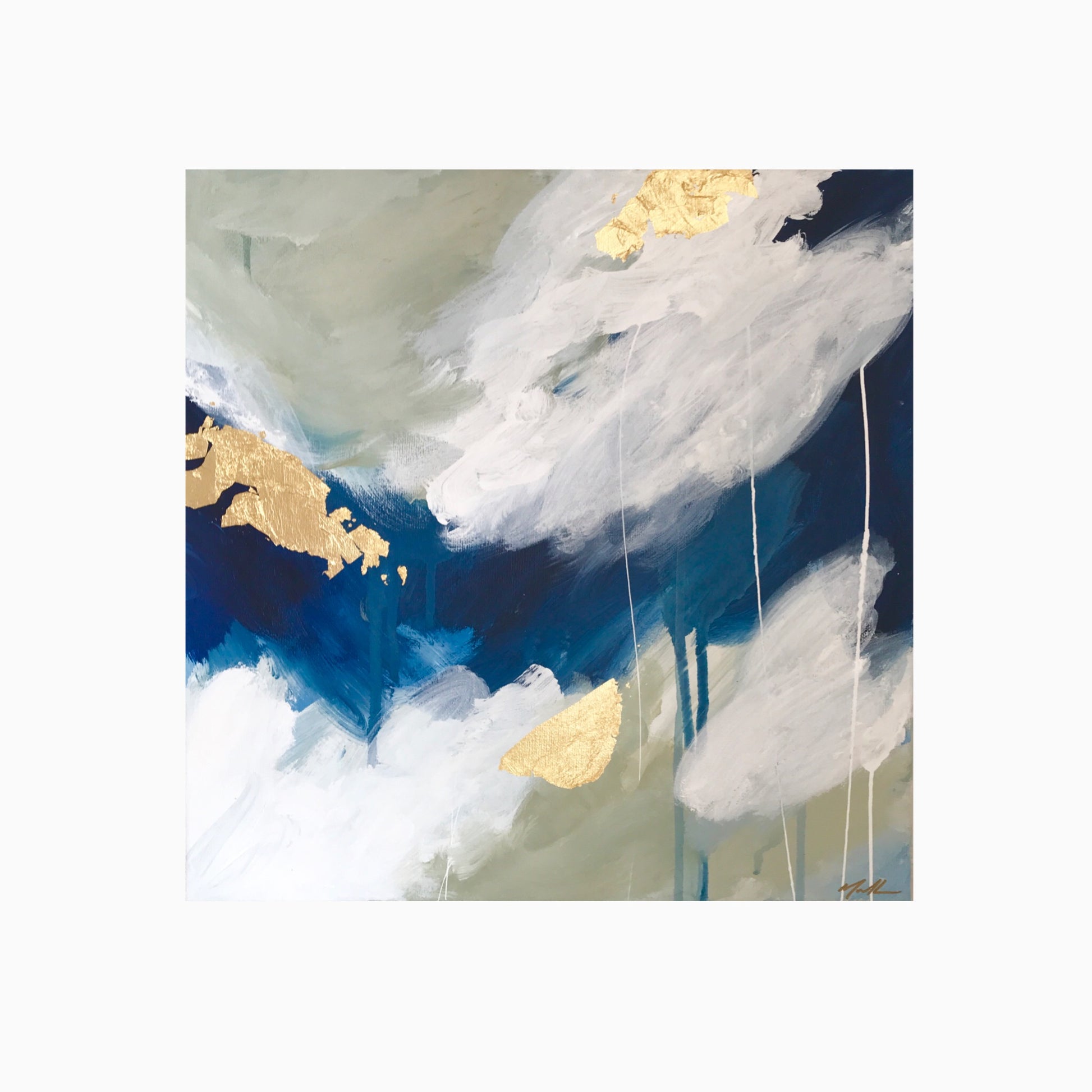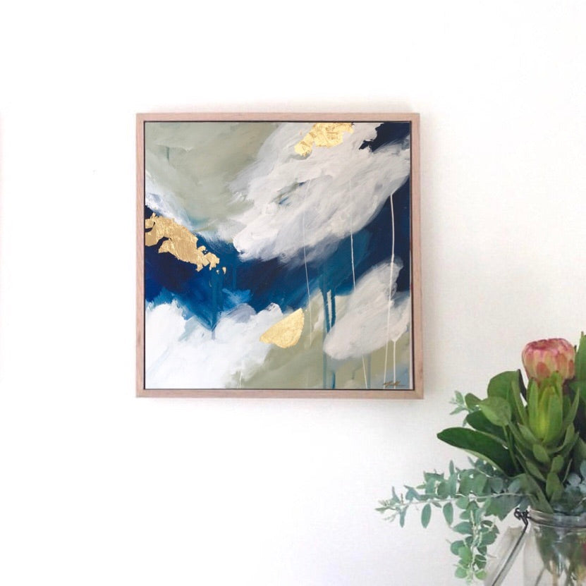Acrylics and gold leaf on canvas, framed in raw Tassie Oak