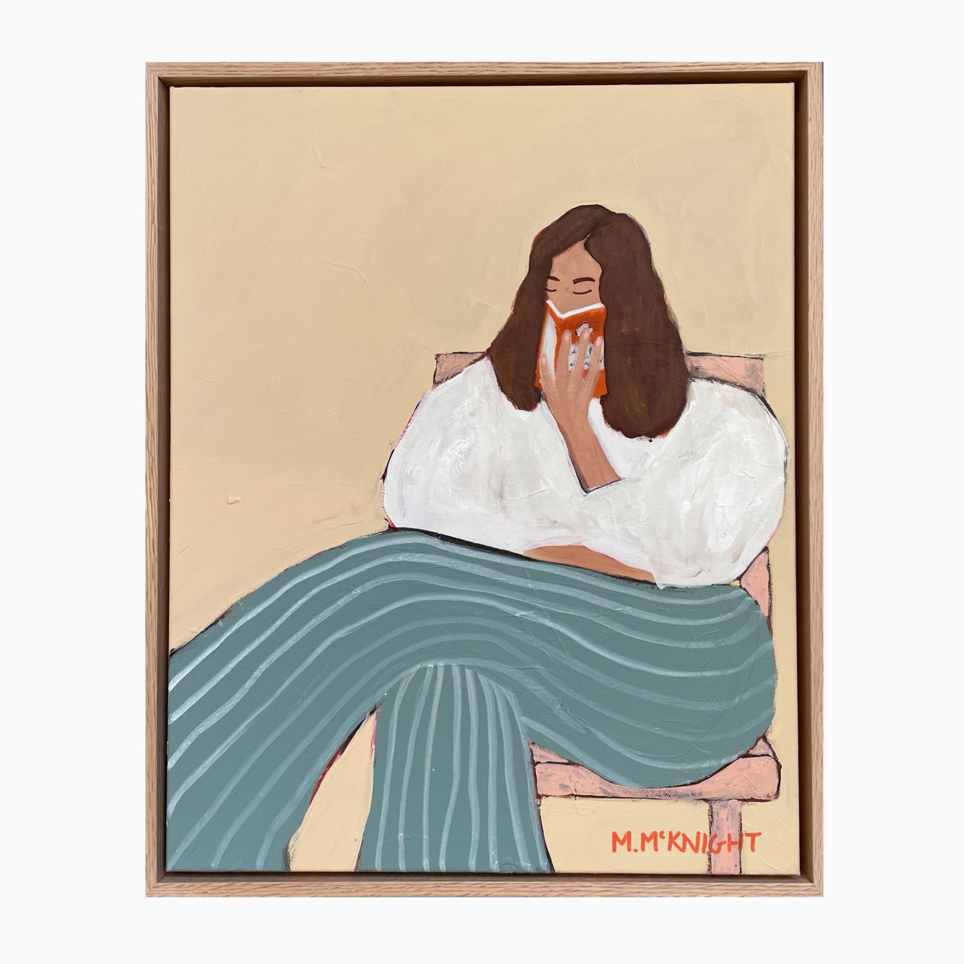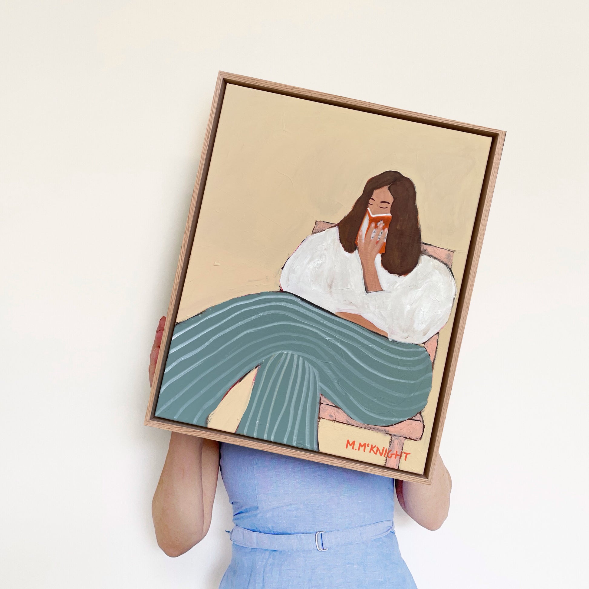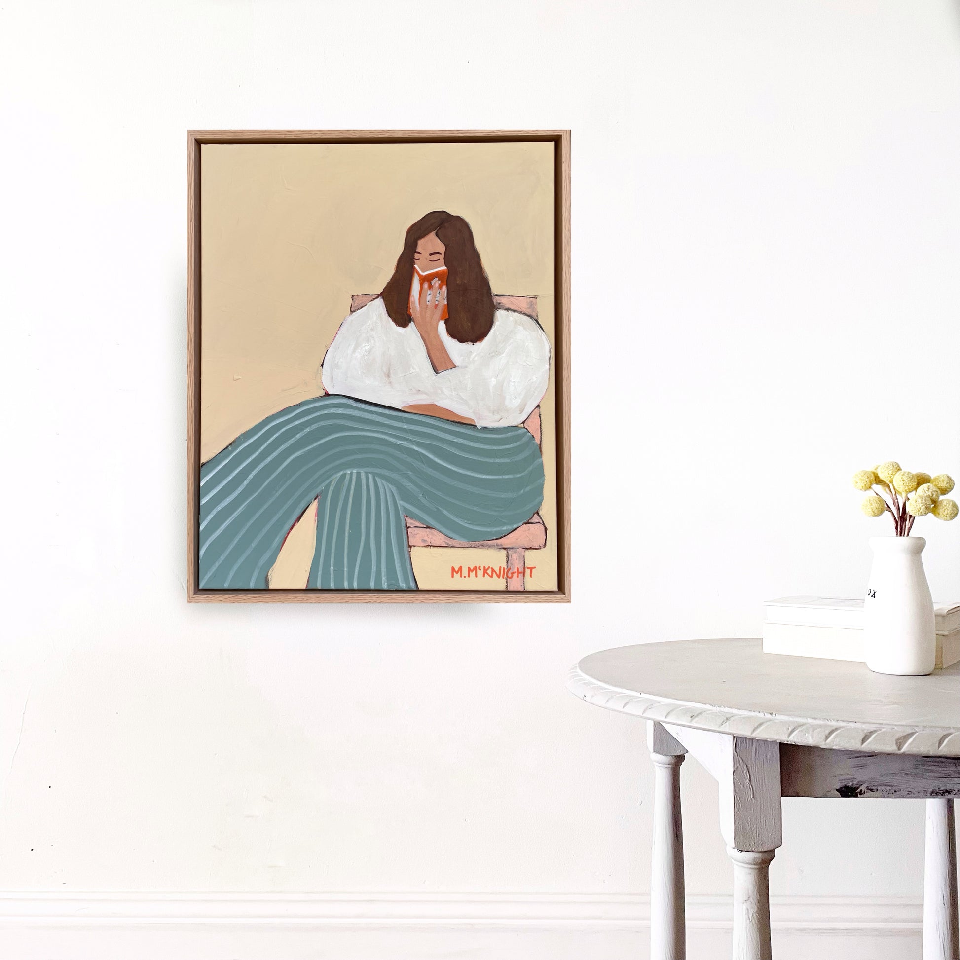 Marnie McKnight's Light Reading series blends art and literature, inspired by classic novels. Each serene, timeless piece features vintage fashion, Renaissance-inspired poses, and intricate textures that reflect the depth of storytelling. Subtle botanical patterns and iconic Penguin classic covers add layers of meaning, inviting viewers to explore their own narratives. Perfect for art and book lovers alike.