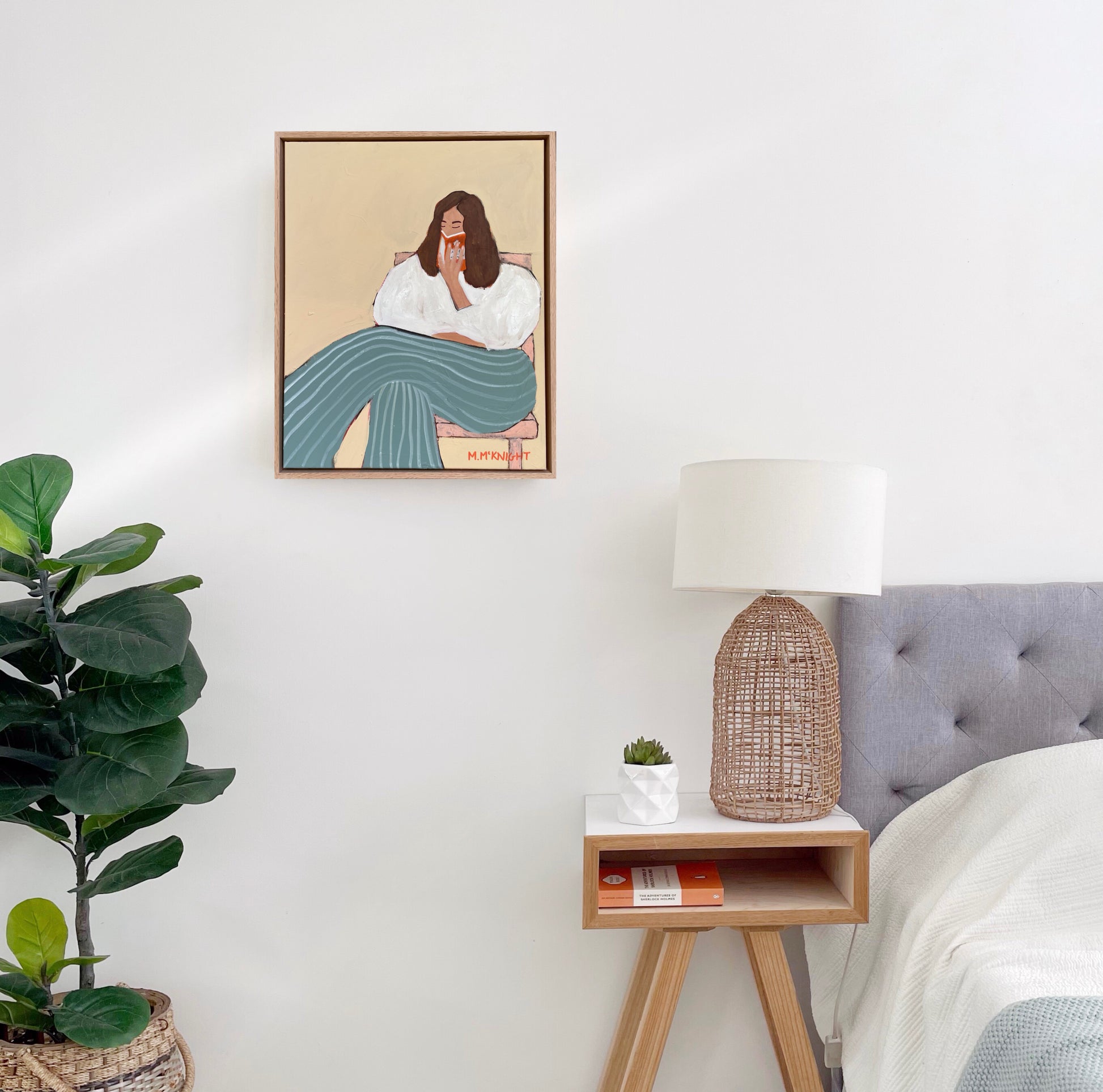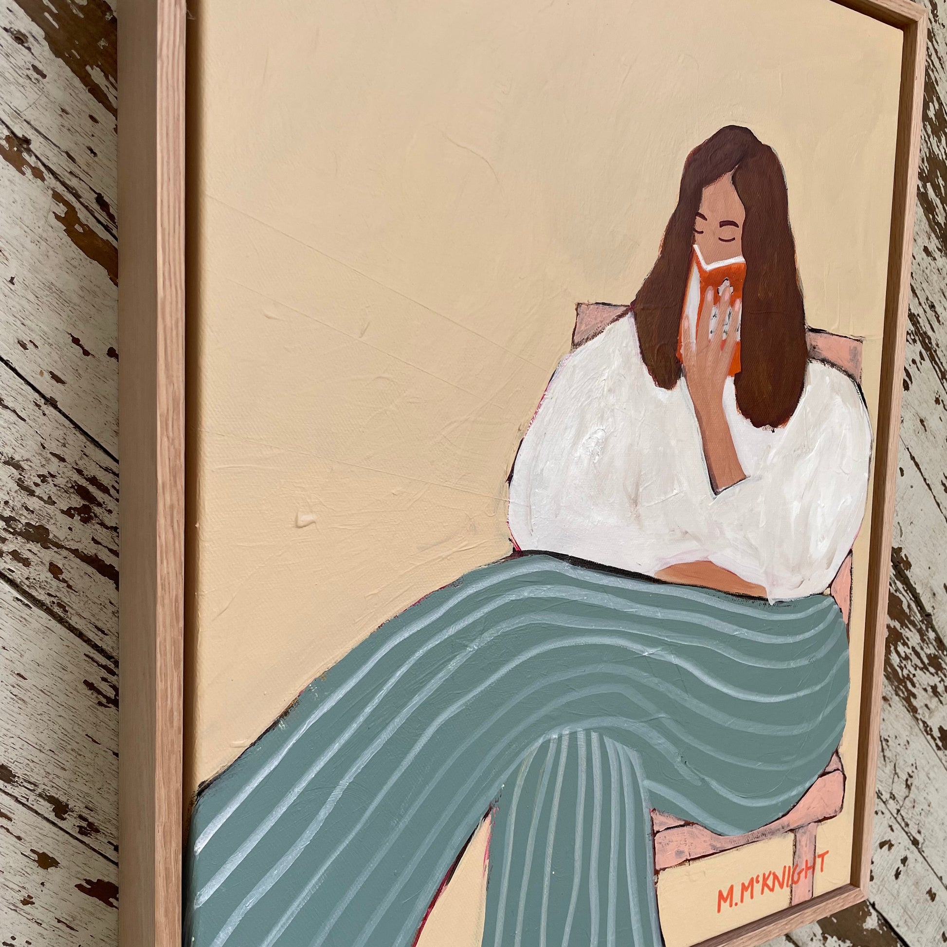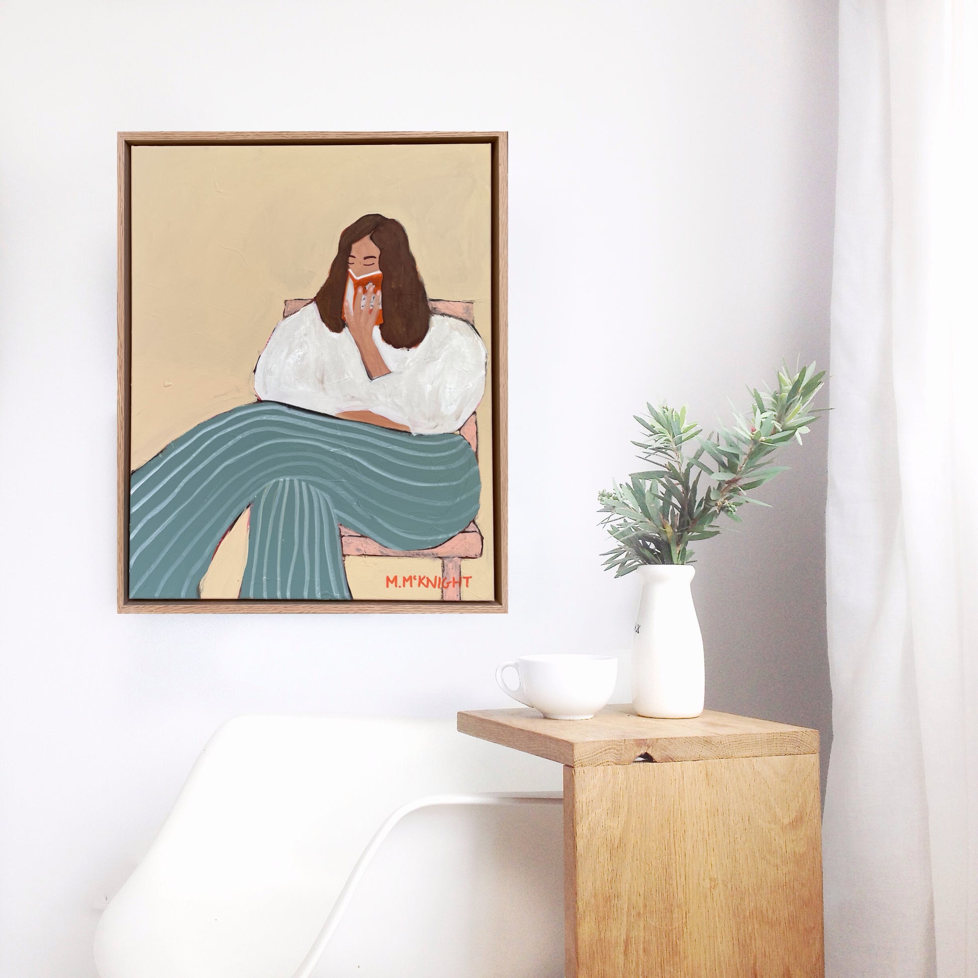 Marnie McKnight's Light Reading series blends art and literature, inspired by classic novels. Each serene, timeless piece features vintage fashion, Renaissance-inspired poses, and intricate textures that reflect the depth of storytelling. Subtle botanical patterns and iconic Penguin classic covers add layers of meaning, inviting viewers to explore their own narratives. Perfect for art and book lovers alike.