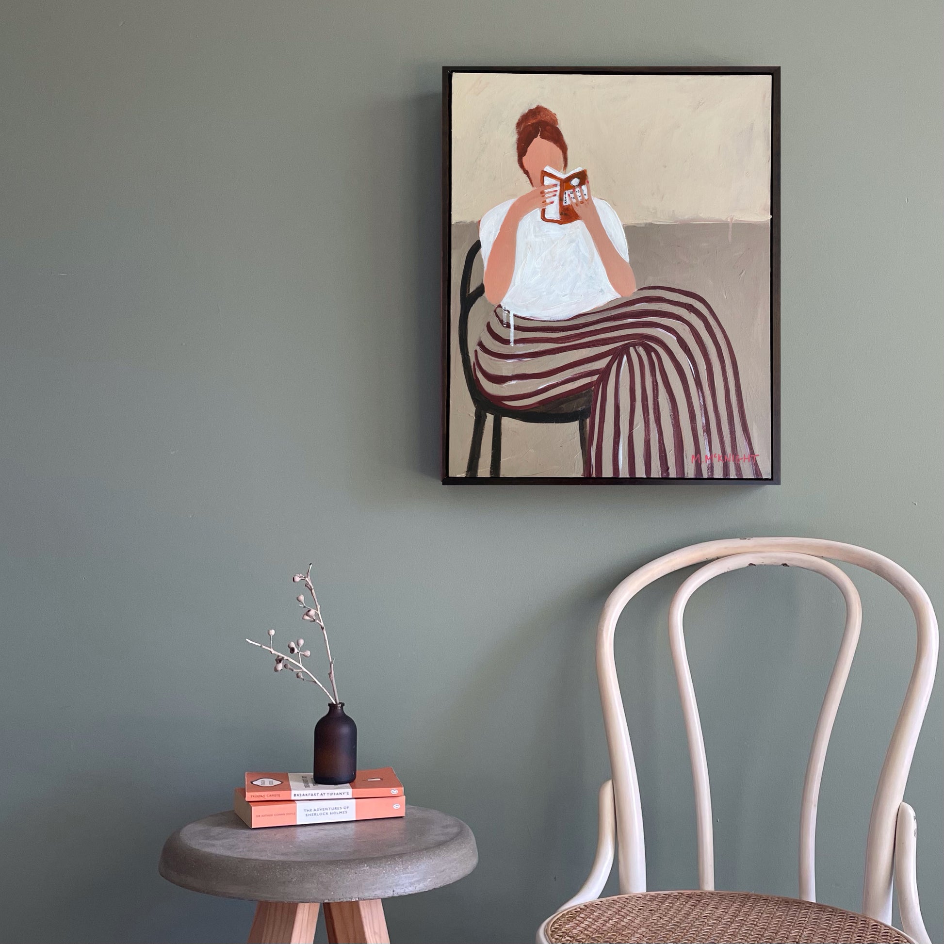 Marnie McKnight's Light Reading series blends art and literature, inspired by classic novels. Each serene, timeless piece features vintage fashion, Renaissance-inspired poses, and intricate textures that reflect the depth of storytelling. Subtle botanical patterns and iconic Penguin classic covers add layers of meaning, inviting viewers to explore their own narratives. Perfect for art and book lovers alike.