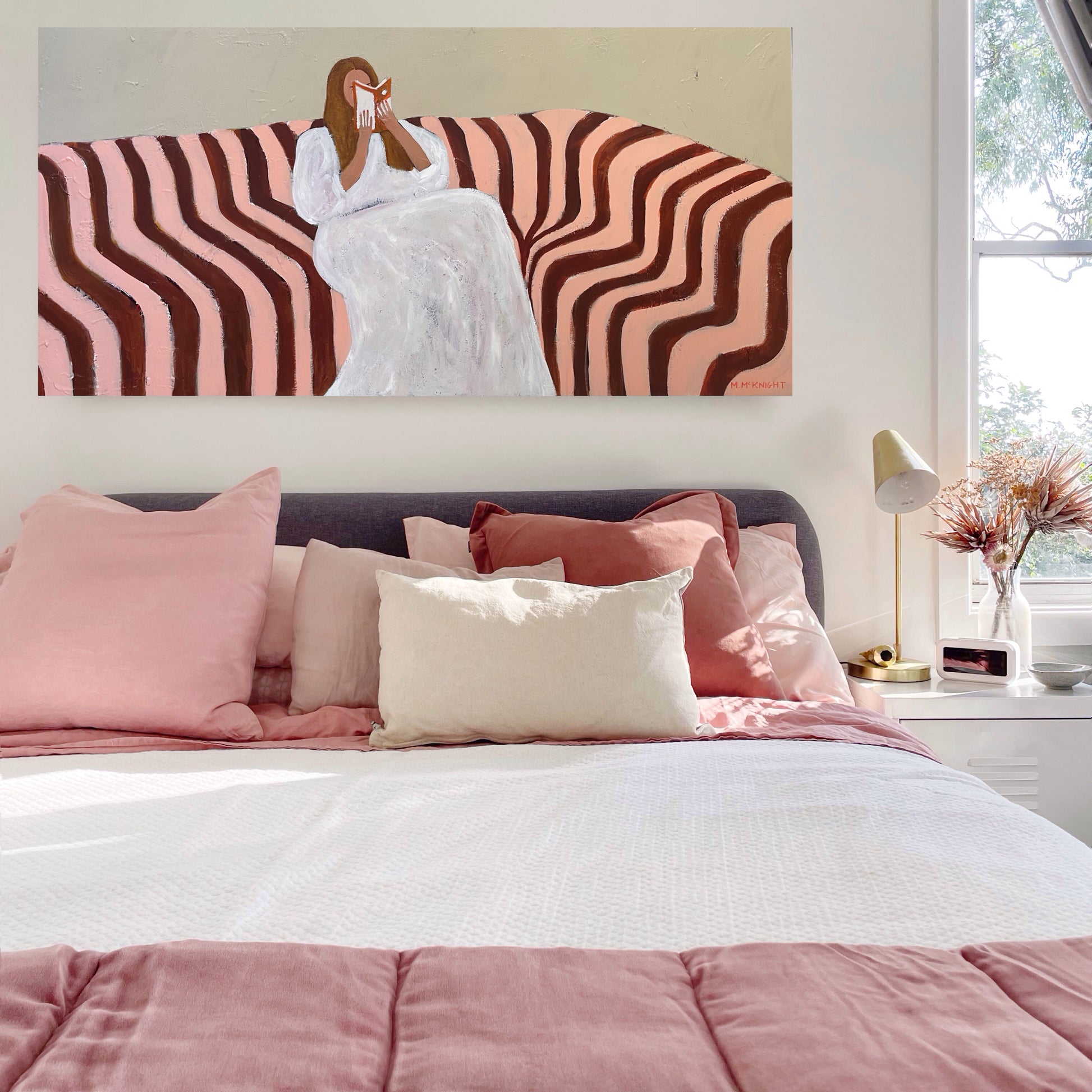 McKnight’s series entitled ‘Light Reading’ is inspired by her very real love of books, inviting viewers into a tranquil space where boundaries between the world of art and literature blur seamlessly.