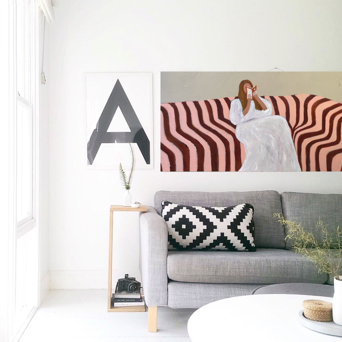There is a timeless elegance to each piece, with subtle hints of vintage fashion adding nostalgia to the scene, or a classic renaissance pose being referenced. Some artworks have complex textures on the clothing or walls, the complicated patterns echoing the intricate layers of the story the reader holds in her hands. Occasionally these patterns are botanical, hinting at a world beyond the confines of the room—a world waiting to be explored through the pages of literature.