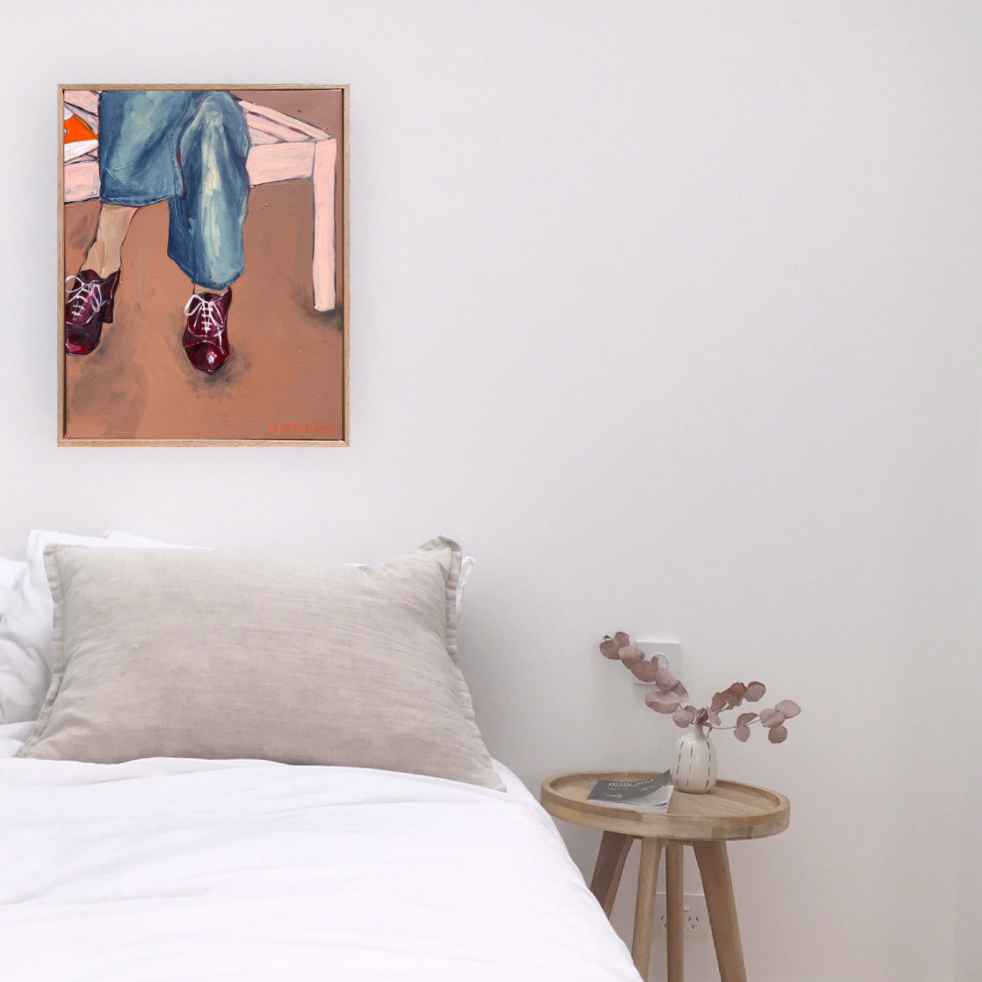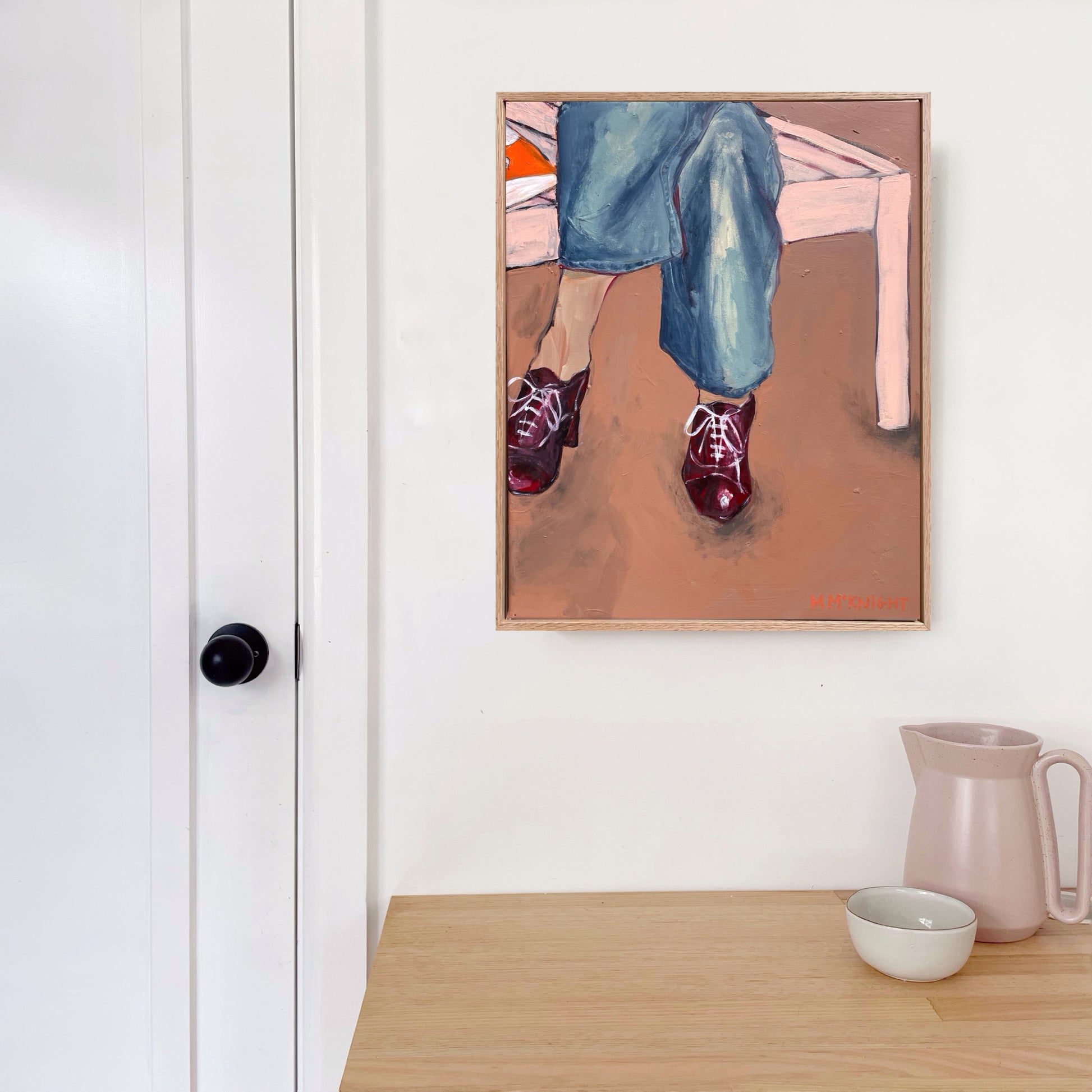 Acrylics and gold leaf on canvas, framed in raw Tassie Oak