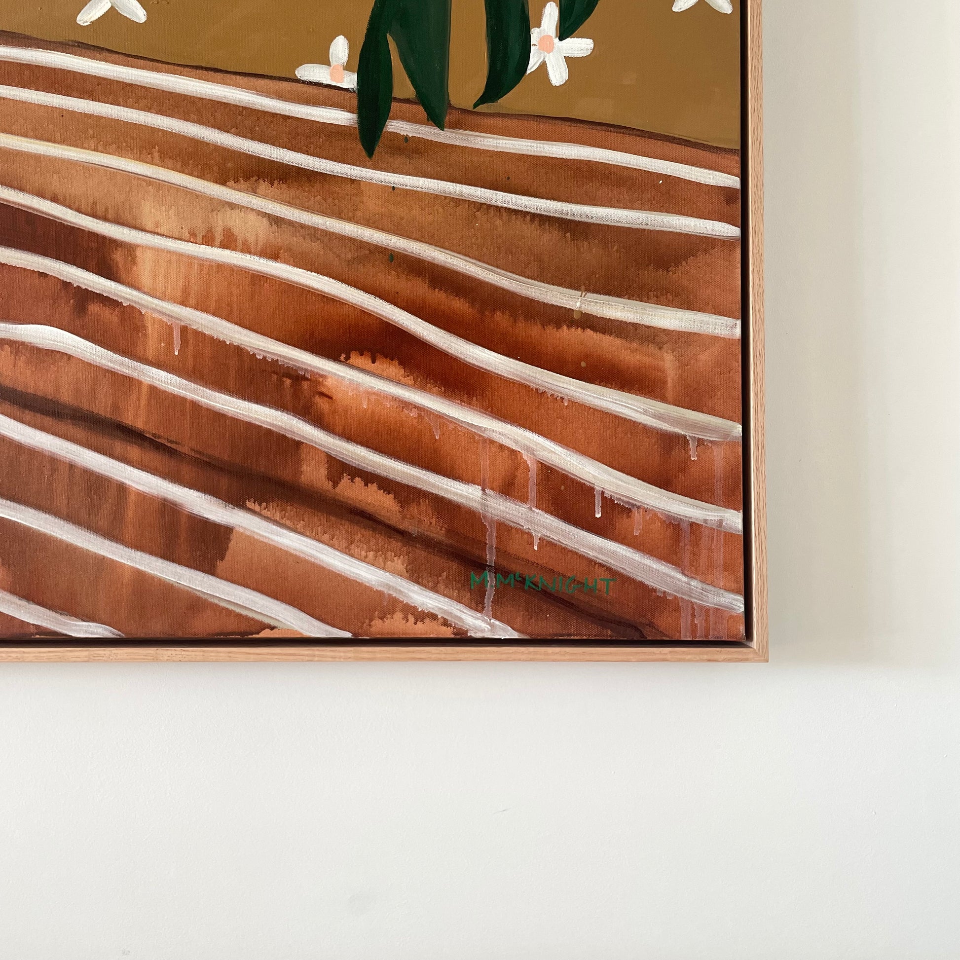 Acrylics and gold leaf on canvas, framed in raw Tassie Oak