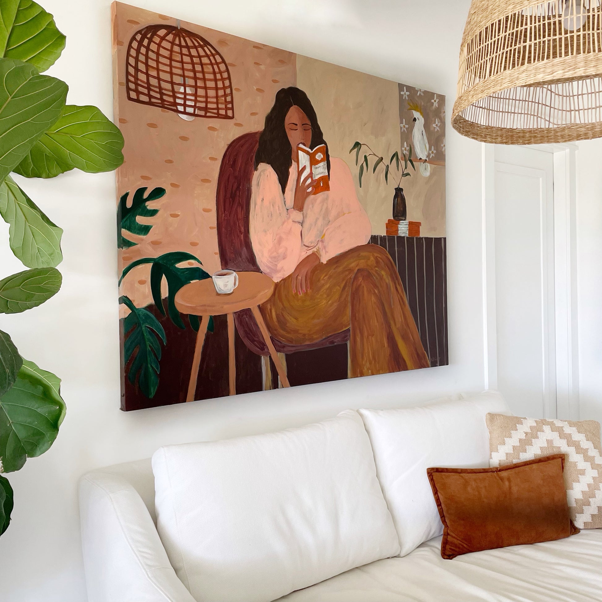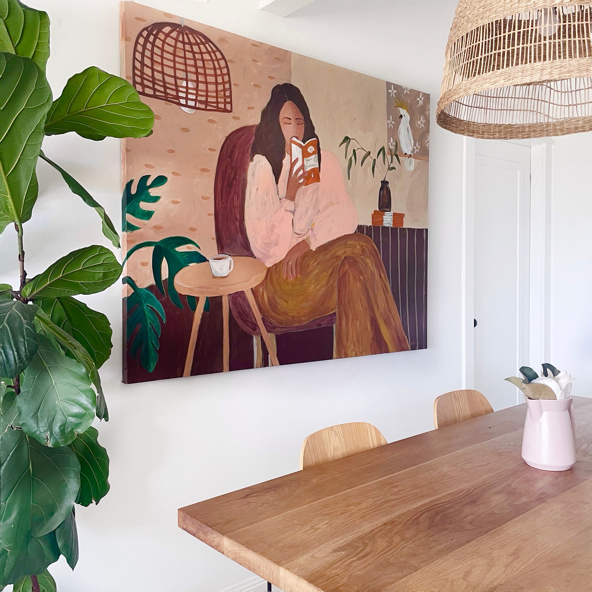 Acrylics and gold leaf on canvas, framed in raw Tassie Oak