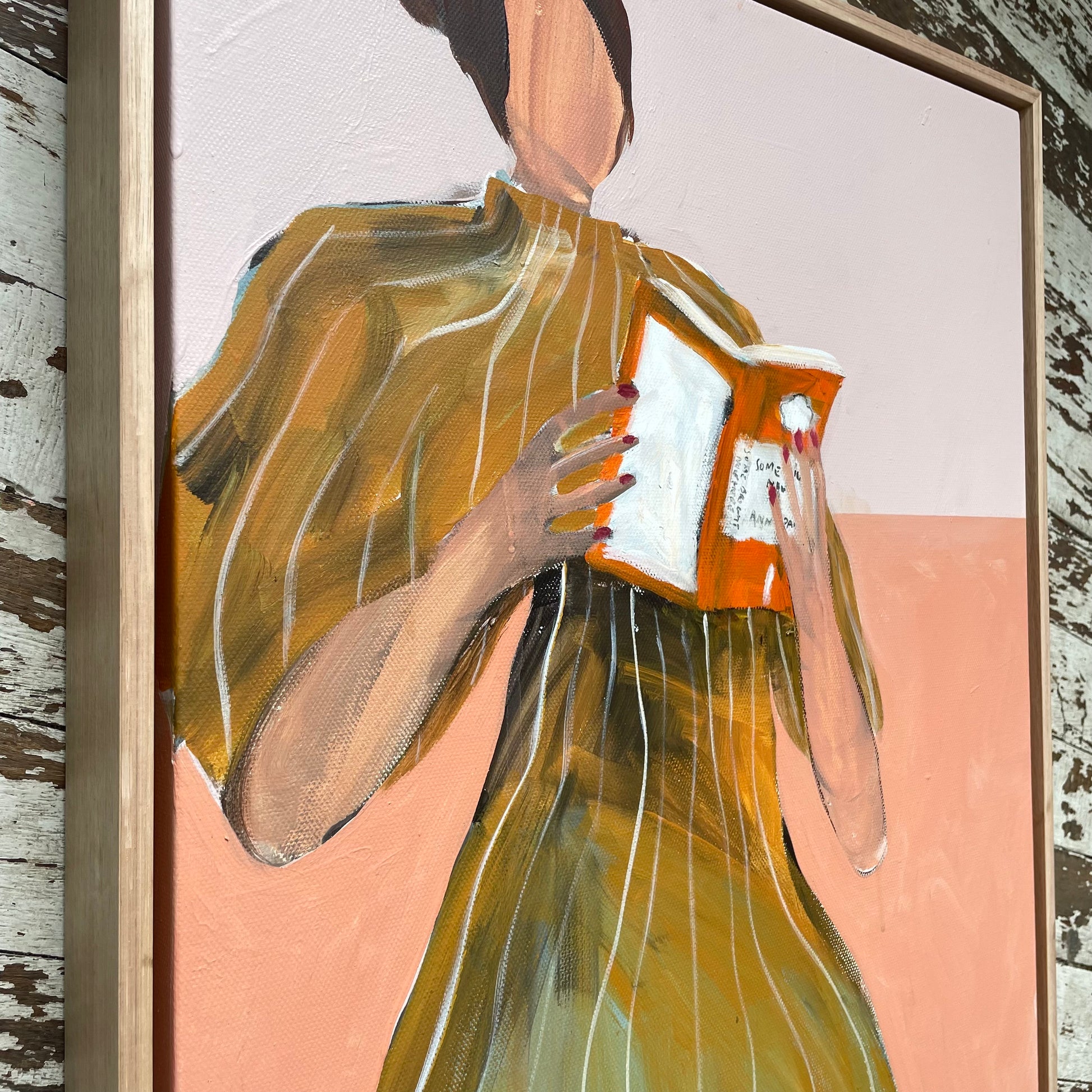 Acrylics and gold leaf on canvas, framed in raw Tassie Oak