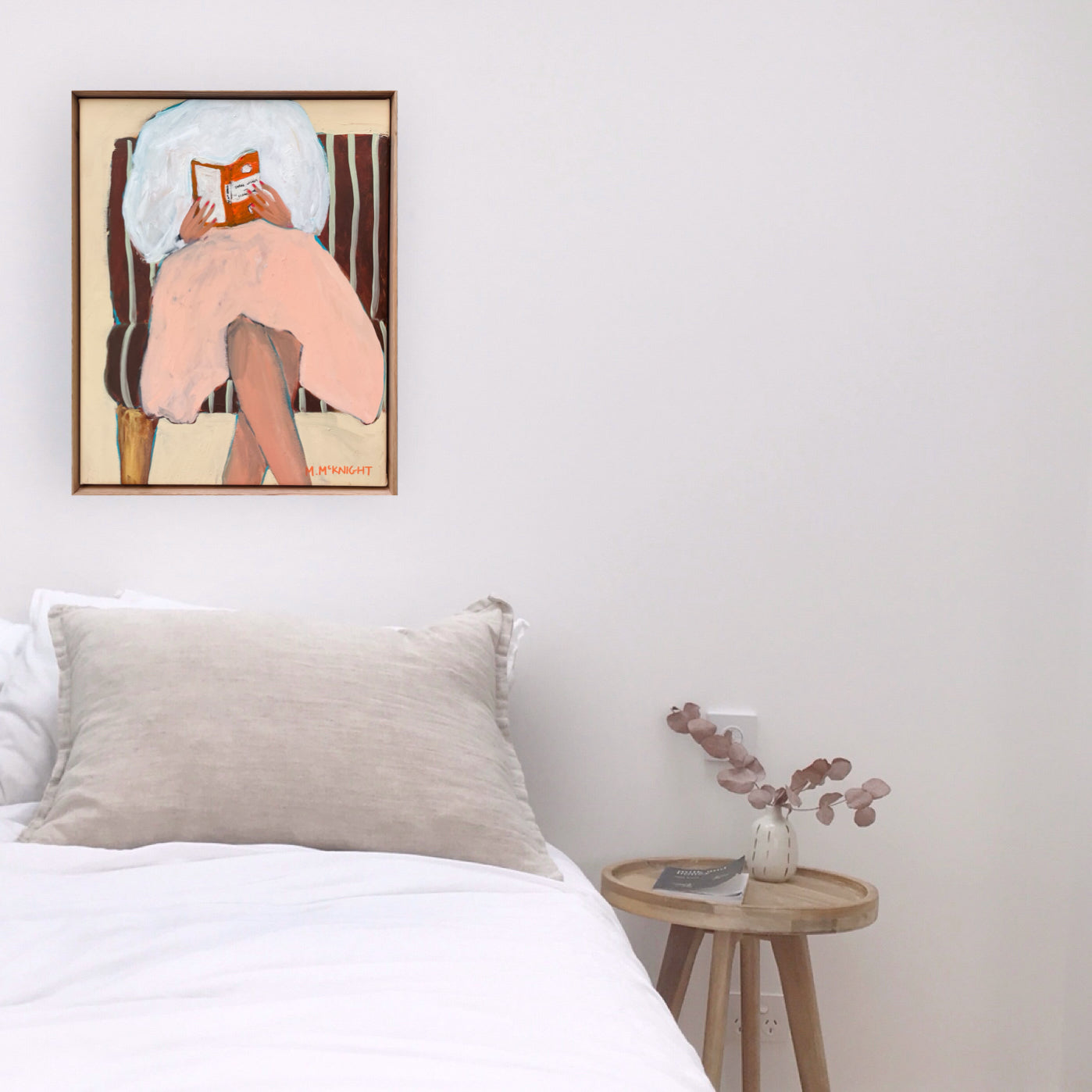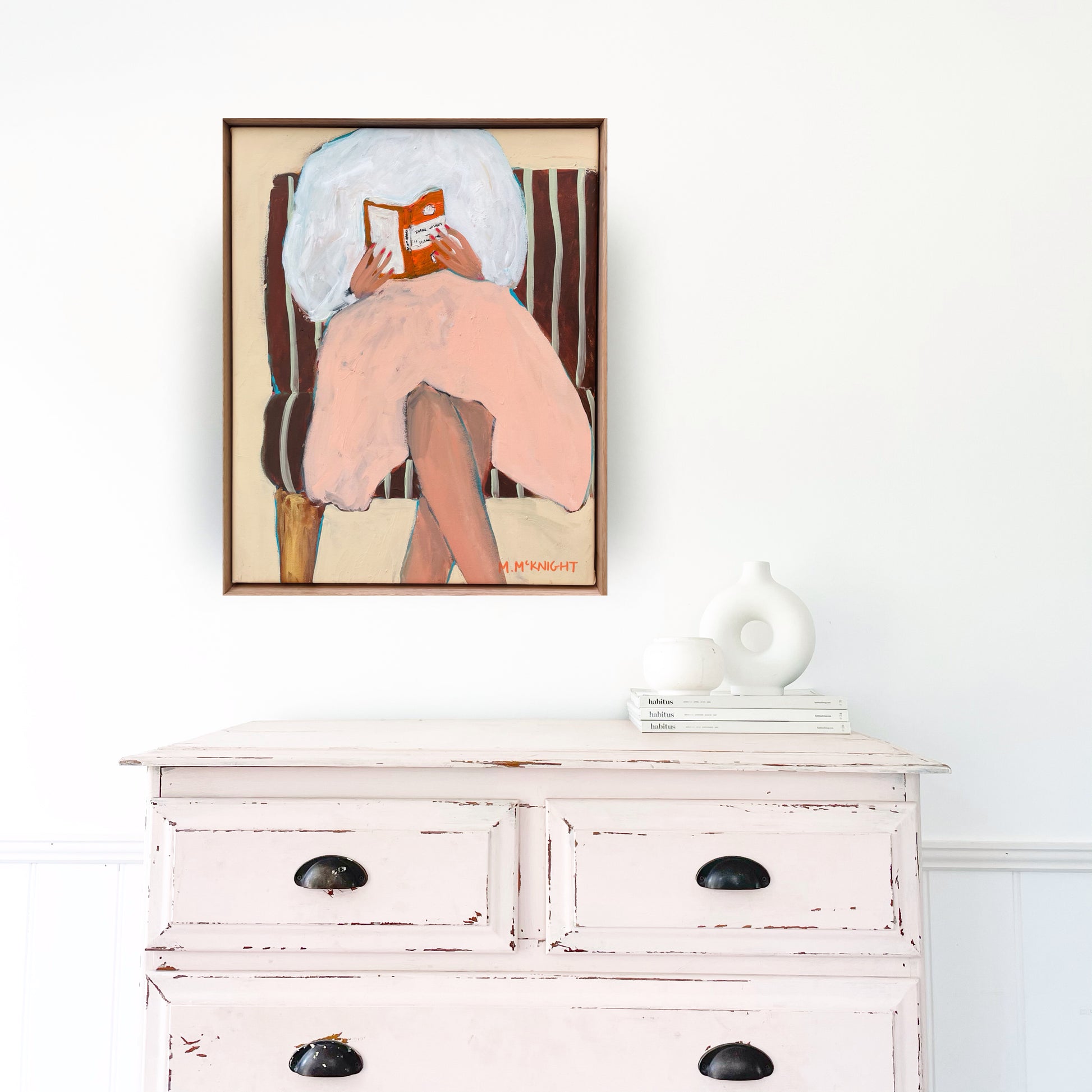 Marnie McKnight's Light Reading series blends art and literature, inspired by classic novels. Each serene, timeless piece features vintage fashion, Renaissance-inspired poses, and intricate textures that reflect the depth of storytelling. Subtle botanical patterns and iconic Penguin classic covers add layers of meaning, inviting viewers to explore their own narratives. Perfect for art and book lovers alike.