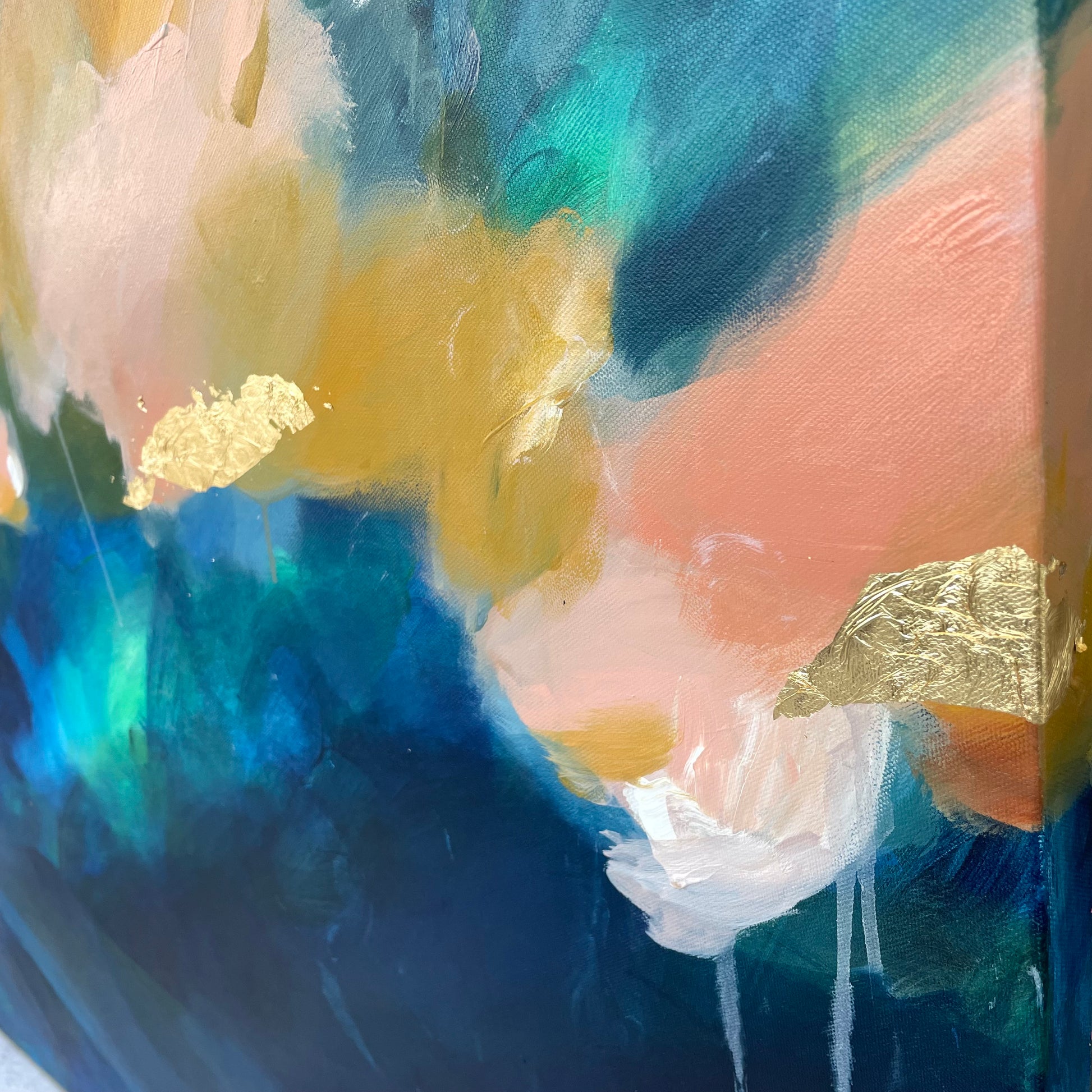 Acrylics and gold leaf on canvas, framed in raw Tassie Oak