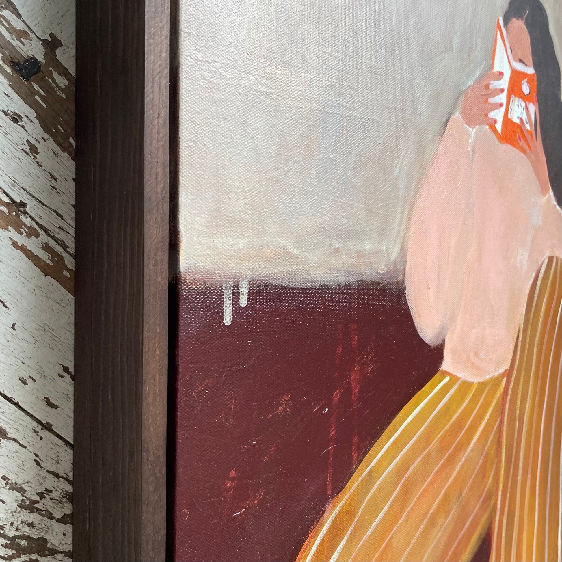 Marnie McKnight's Light Reading series blends art and literature, inspired by classic novels. Each serene, timeless piece features vintage fashion, Renaissance-inspired poses, and intricate textures that reflect the depth of storytelling. Subtle botanical patterns and iconic Penguin classic covers add layers of meaning, inviting viewers to explore their own narratives. Perfect for art and book lovers alike.